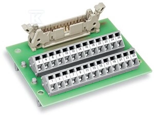 Moduł przejściowy, wielowtyk zgodny z DIN 41651, 14-biegunowe złączki i złącza do PCB, 2-rzędowe, ze stopkami montażowymi, 2,50 mm2 o numerze katalogowym 289-402 w kategorii Niesklasyfikowane>Pozostałe. Produkt wyprodukowany przez markę WAGO, seria 289.