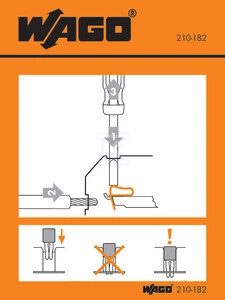 Naklejka z instrukcją obsługi, do złączek listwowych z oprzewodowaniem z boku, serie od 279 do 284 o numerze katalogowym 210-182 w kategorii Niesklasyfikowane>Pozostałe. Produkt wyprodukowany przez markę WAGO, seria 210.