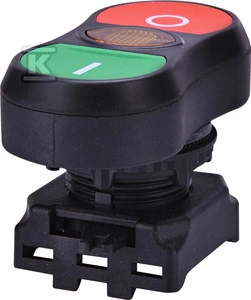 Napęd z guzikiem podwójnym podświetlany z pomarańczową listwą centralną EGTI-A o numerze katalogowym  004771391 w kategorii Wyłączniki silnikowe, Sterowanie i zabezpieczenie silników. Produkt wyprodukowany przez markę ETI.