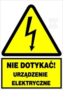 Znak elektryczny ostrzegawczy NIE DOTYKAĆ URZĄDZENIE ELEKTRYCZNE o numerze katalogowym ZEO/A-1 w kategorii Tablice informacyjne i ostrzegawcze, Wyposażenie i akcesoria. Produkt wyprodukowany przez markę TRYTYT.