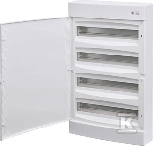 Obudowa natynkowa 4 rzędy po 18 mod. drzwi białe ECT 4X18PO-S o numerze katalogowym  001100321 w kategorii Tworzywowe natynkowe, Rozdzielnice i obudowy. Produkt wyprodukowany przez markę ETI.