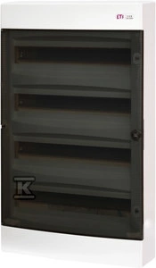 Obudowa natynkowa 4 rzędy po 18 mod. drzwi transparentne ECT 4X18PT-S o numerze katalogowym  001100320 w kategorii Tworzywowe natynkowe, Rozdzielnice i obudowy. Produkt wyprodukowany przez markę ETI.