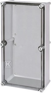 Obudowa natynkowa poliestrowa z płytą montażową poliestrową, pokrywa przezroczysta SB-64 o numerze katalogowym  001102502 w kategorii Tworzywowe natynkowe, Rozdzielnice i obudowy. Produkt wyprodukowany przez markę ETI.