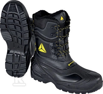 Obuwie wysokie bezpieczne typu kanadyjskiego z pu i poliestru, podeszwa z dwuwarstwowego pu o zróżnicowanych gęstościach do - 30°c, podnosek i wkładka kompozytowe czarny 43 o numerze katalogowym  ESKIMSHNO43 w kategorii Obuwie robocze, Ochrona nóg. Produkt wyprodukowany przez markę DELTA PLUS.