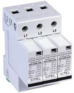 Ogranicznik przepięć Typ 1+2 (BC) 37,5KA 3P DS133RS-230 o numerze katalogowym C571513 w kategorii Ograniczniki przepięć typ 1+2, Ograniczniki przepięć. Produkt wyprodukowany przez markę CITEL, seria DS..