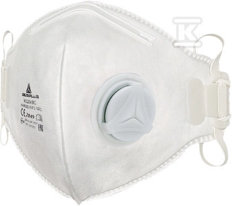 Opakowanie 10 półmasek z filtrem ffp1, z zaworem, składane w pionie, z testem dolomitowym biały regulowany o numerze katalogowym  M1100VBC w kategorii Maski wielokrotnego użytku, Ochrona głowy. Produkt wyprodukowany przez markę DELTA PLUS.