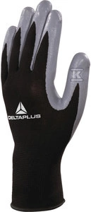 Opakowanie 10 par rękawic dzianych z poliestru, dłoń powlekana nitrylem czarno-szary 9 o numerze katalogowym  VE712GRG1009 w kategorii Rękawice poliestrowe i poliamidowe, Ochrona rąk. Produkt wyprodukowany przez markę DELTA PLUS.