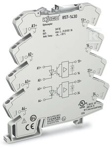 Optoseparator 2-torowy, znamionowe napięcie wejściowe 24 V DC, zakres napięcia wyjściowego 3 … 31,2 V DC, maksymalny prąd długotrwały 3 A, podłączanie 2-przewodowe, sygnalizacja statusu żółta, szerokość 6 mm, jasnoszary o numerze katalogowym 857-1430 w kategorii Niesklasyfikowane>Pozostałe. Produkt wyprodukowany przez markę WAGO, seria 857.