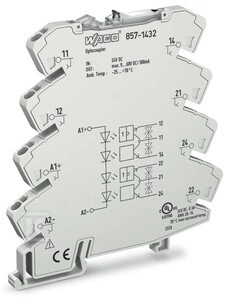Optoseparator 2-torowy, znamionowe napięcie wejściowe 24 V DC, zakres napięcia wyjściowego 9 … 60 V DC, maksymalny prąd długotrwały 0,5 A, 2 x zestyk przełączny, sygnalizacja statusu żółta, szerokość 6 mm, jasnoszary o numerze katalogowym 857-1432 w kategorii Niesklasyfikowane>Pozostałe. Produkt wyprodukowany przez markę WAGO, seria 857.