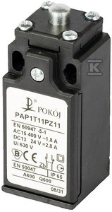 Wyłącznik krańcowy PAP1T11PZ11 jednopozycyjny o numerze katalogowym A37-1020 w kategorii Krańcówki, Czujniki mechaniczne. Produkt wyprodukowany przez markę POKÓJ, seria PAP.