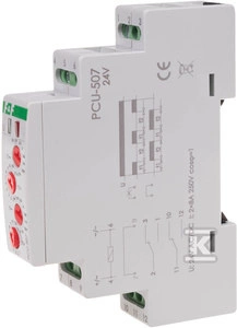 Przekaźnik czasowy 4-funkcyjny (nastawa 2 czasów T1 T3 PCU-507 24V uniwersalny zakres czasowy 0,1s÷576h Un=230V~ Io<2×8A montaż na szynie TH-35 o numerze katalogowym PCU-507-24V w kategorii Przekaźniki czasowe, Przekaźniki. Produkt wyprodukowany przez markę F&F.