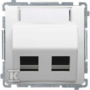 Pokrywa gniazd teleinformatycznych na Keystone skośna podwójna z polem opisowym. Montaż na łapki lub wkręty Basic moduł biały o numerze katalogowym BMGKS2P.01/11 w kategorii Plakietki, Ramki, klawisze, plakietki. Produkt wyprodukowany przez markę KONTAKT-SIMON, seria BASIC MODUŁ.