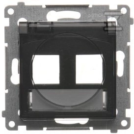 Pokrywa gniazd teleinformatycznych IP44 na Keystone podwójna z polem opisowym, klapka transparentna, czarny mat *Wymagana uszczelka IP44 do ramki Simon54 o numerze katalogowym DKP2B.01/49A w kategorii Plakietki, Ramki, klawisze, plakietki. Produkt wyprodukowany przez markę KONTAKT-SIMON, seria SIMON 54.