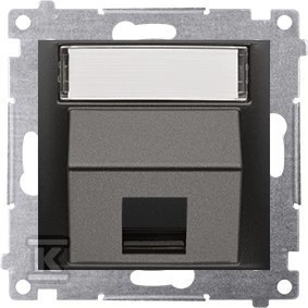 Pokrywa gniazd teleinformatycznych na Keystone skośna pojedyncza z polem opisowym (moduł). Montaż na łapki i wkręty, czarny mat Simon54 o numerze katalogowym DKP1S.01/49 w kategorii Plakietki, Ramki, klawisze, plakietki. Produkt wyprodukowany przez markę KONTAKT-SIMON, seria SIMON 54.