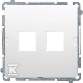 Pokrywa gniazd teleinformatycznych na Keystone płaska podwójna, montaż na łapki lub wkręty, biały o numerze katalogowym BMPT/11 w kategorii Plakietki, Ramki, klawisze, plakietki. Produkt wyprodukowany przez markę KONTAKT-SIMON, seria BASIC MODUŁ.