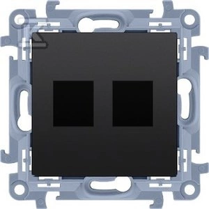 Pokrywa gniazd teleinformatycznych na Keystone płaska podwójna (moduł), czarny mat, SIMON10 o numerze katalogowym CKP2.01/49 w kategorii Plakietki, Ramki, klawisze, plakietki. Produkt wyprodukowany przez markę KONTAKT-SIMON, seria SIMON 10.