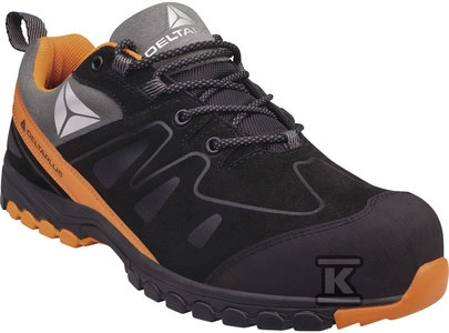 Półbuty z weluru skórzanego cielęcego, podeszwa z phylonu, kauczuku i nitrylu, podnosek i wkładka kompozytowe czarno-pomarańczowy 41 o numerze katalogowym  BROOKS3NO41 w kategorii Obuwie robocze, Ochrona nóg. Produkt wyprodukowany przez markę DELTA PLUS.