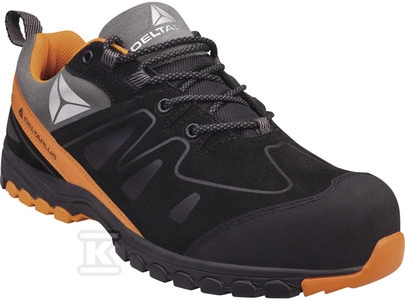 Półbuty z weluru skórzanego cielęcego, podeszwa z phylonu, kauczuku i nitrylu, podnosek i wkładka kompozytowe czarno-pomarańczowy 46 o numerze katalogowym  BROOKS3NO46 w kategorii Obuwie robocze, Ochrona nóg. Produkt wyprodukowany przez markę DELTA PLUS.