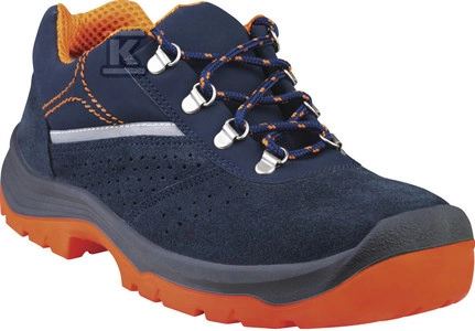 Półbuty perforowane z weluru skórzanego, podeszwa z dwuwarstwowego pu o zróżnicowanych gęstościach granatowo-pomarańczowy 45 o numerze katalogowym  RIMI4SPBL45 w kategorii Obuwie robocze, Ochrona nóg. Produkt wyprodukowany przez markę DELTA PLUS.