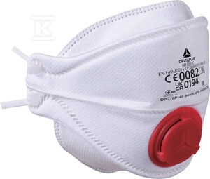 Opakowanie 20 półmasek z filtrem FFP3, składane poziomo (4 zakładki), z testem dolomitowym biały regulowany o numerze katalogowym M1305VC w kategorii Ochrona głowy>Maski wielokrotnego użytku. Produkt wyprodukowany przez markę DELTA PLUS, seria OCHRONA GŁOWY.