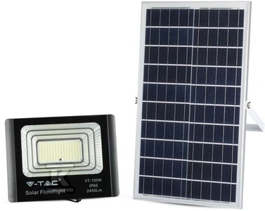 Projektor LED Solarny V-TAC 35W Czarny IP65, Pilot, Timer VT-100W 4000K 2450lm o numerze katalogowym 8576 w kategorii Naświetlacze LED, Oprawy zewnętrzne LED. Produkt wyprodukowany przez markę V-TAC.