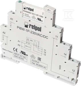 Przekaźnik interfejsowy wąskoprofilowy 1P 6A 230V AC/DC IP20 PIR6W-1P-230VAC/DC o numerze katalogowym 856069 w kategorii Przekaźniki elektromagnetyczne>Przekaźniki interfejsowe. Produkt wyprodukowany przez markę RELPOL.