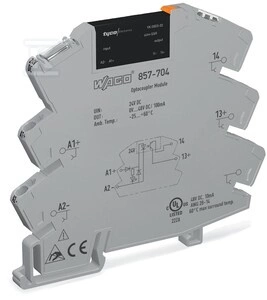 Przekaźnik półprzewodnikowy, znamionowe napięcie wejściowe 24 V DC, zakres napięcia wyjściowego 0 … 48 V DC, maksymalny prąd długotrwały 0,1 A, sygnalizacja statusu żółta, szerokość 6 mm, szary o numerze katalogowym 857-704 w kategorii Niesklasyfikowane>Pozostałe. Produkt wyprodukowany przez markę WAGO, seria 857.