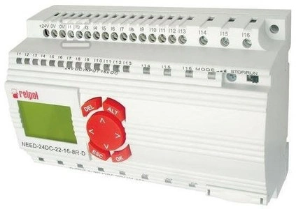 Przekaźnik programowalny NEED-24DC-22-16-8R-D wejścia 16 wyjścia 8, zasilanie: 24VDC, z wyświetlaczem, wersja 22  o numerze katalogowym  859362  w kategorii Przekaźniki programowalne, Sterowniki programowalne. Produkt wyprodukowany przez markę RELPOL, seria NEED.