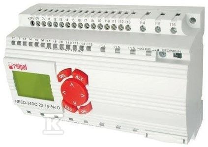 Przekaźnik programowalny NEED-24DC-22-16-8T-D z wyświetlaczem wejścia 16 wyjścia 8 półprzewodnikowych 0,5A/24VDC napięcie zasilające 24VDC Wskaźniki LED IP 20 o numerze katalogowym 860265 w kategorii Przekaźniki programowalne, Sterowniki programowalne. Produkt wyprodukowany przez markę RELPOL, seria NEED.