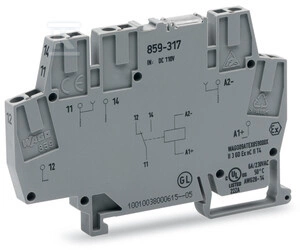 Przekaźnik znamionowe napięcie wejściowe 110 V DC, 1 zestyk przełączny, z pozłacanymi zestykami, kolejnictwo, sygnalizacja statusu czerwony, szerokość 6 mm, 2,50 mm2, szary o numerze katalogowym 859-317 w kategorii Niesklasyfikowane>Pozostałe. Produkt wyprodukowany przez markę WAGO, seria 859.