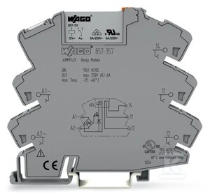 Przekaźnik znamionowe napięcie wejściowe 115 V AC/DC, 1 zestyk przełączny, maksymalny prąd długotrwały 6 A, sygnalizacja statusu żółta, szerokość 6 mm, 2,50 mm2, szary o numerze katalogowym 857-357 w kategorii Niesklasyfikowane>Pozostałe. Produkt wyprodukowany przez markę WAGO, seria 857.