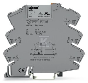 Przekaźnik znamionowe napięcie wejściowe 12 V DC, 1 zestyk przełączny, maksymalny prąd długotrwały 6 A, sygnalizacja statusu żółta, szerokość 6 mm, 2,50 mm2, szary o numerze katalogowym 857-303 w kategorii Niesklasyfikowane>Pozostałe. Produkt wyprodukowany przez markę WAGO, seria 857.