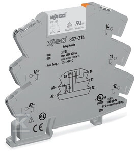 Przekaźnik znamionowe napięcie wejściowe 24 V DC, 1 zestyk przełączny, maksymalny prąd długotrwały 6 A, z pozłacanymi zestykami, sygnalizacja statusu żółta, szerokość 6 mm, 2,50 mm2, szary o numerze katalogowym 857-314 w kategorii Niesklasyfikowane>Pozostałe. Produkt wyprodukowany przez markę WAGO, seria 857.