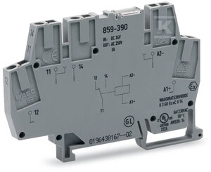 Przekaźnik znamionowe napięcie wejściowe 36 V DC, 1 zestyk przełączny, kolejnictwo, sygnalizacja statusu czerwony, szerokość 6 mm o numerze katalogowym 859-394 w kategorii Niesklasyfikowane>Pozostałe. Produkt wyprodukowany przez markę WAGO, seria 859.