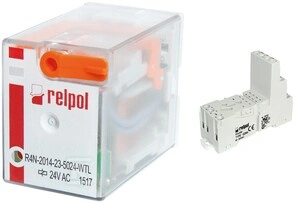 Przekaźnik elektromagnetyczny, przemysłowy R4N-2014-23-5024-WTL + Gniazdo wtykowe GZM4-SZARE do Przekaźnika R4 szare o numerze katalogowym DNB340 w kategorii Przekaźniki elektromagnetyczne>Przekaźniki miniaturowe. Produkt wyprodukowany przez markę RELPOL.