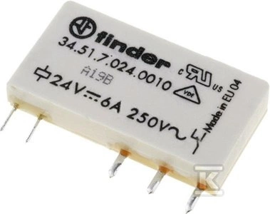 34.51.7.024.0010 Przekaźnik 1P 6A 24V DC o numerze katalogowym 34.51.7.024.0010 w kategorii Przekaźniki interfejsowe, Przekaźniki elektromagnetyczne. Produkt wyprodukowany przez markę FINDER, seria 34.