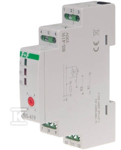 Przekaźnik bistabilny, 4 funkcyjny, din, dwa obwody sterowania, z przekaźnikiem inrush 160a/20ms BIS-419-LED o numerze katalogowym  BIS-419-LED w kategorii Przekaźniki impulsowe, Przekaźniki. Produkt wyprodukowany przez markę F&F.