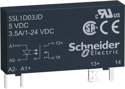 Przekaźnik półprzewodnikowy SSR 24VDC 3.5A 24VDC o numerze katalogowym  SSL1D03BD w kategorii Przekaźniki SSR jednofazowe, Przekaźniki półprzewodnikowe. Produkt wyprodukowany przez markę SCHNEIDER ELECTRIC.