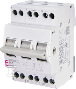 Przełącznik modułowy sieć-agregat I-O-II 25A 3-biegunowy SSQ 325 o numerze katalogowym 002421434 w kategorii Wyłączniki i rozłączniki modułowe, Wyłączniki, rozłączniki. Produkt wyprodukowany przez markę ETI.
