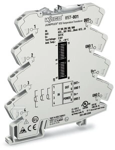 Przetwornik pomiarowy temperatury do czujników RTD, prądowy i napięciowy sygnał wyjściowy, konfiguracja przy użyciu oprogramowania, napięcie zasilania 24 V DC, szerokość 6 mm, jasnoszary o numerze katalogowym 857-801 w kategorii Niesklasyfikowane>Pozostałe. Produkt wyprodukowany przez markę WAGO, seria 857.