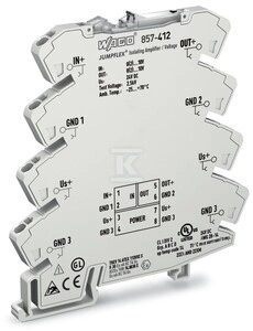 Przetwornik separacyjny ze wzmocnieniem, napięciowy sygnał wejściowy, napięciowy sygnał wyjściowy, napięcie zasilania 24 V DC, szerokość 6 mm, 2,50 mm2 o numerze katalogowym 857-412 w kategorii Niesklasyfikowane>Pozostałe. Produkt wyprodukowany przez markę WAGO, seria 857.
