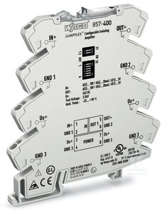 Przetwornik separacyjny ze wzmocnieniem, prądowy i napięciowy sygnał wejściowy, prądowy i napięciowy sygnał wyjściowy, kalibracja zera/zakresu, konfiguracja przy pomocy mikroprzełączników DIP, napięcie zasilania 24 V DC, szerokość 6 mm, 2,50 mm2 o numerze katalogowym 857-400 w kategorii Niesklasyfikowane>Pozostałe. Produkt wyprodukowany przez markę WAGO, seria 857.