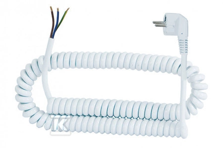 Przewód spiralny - wtyczka kątowa 05VVH8-F - 3x1mm2 - 5m - biały o numerze katalogowym F5.0077 w kategorii Przewody w izolacji PVC>Przewody mieszkaniowe. Produkt wyprodukowany przez markę F-ELEKTRO.
