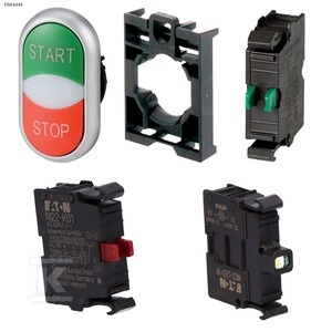Przycisk podwójny podświetlany START/STOP z samopowrotem, płaski 24V o numerze katalogowym DMA049 w kategorii Przyciski i przełączniki sterownicze>Przyciski i przełączniki sterownicze. Produkt wyprodukowany przez markę EATON.