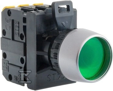 Przycisk sterowniczy kryty zielony podświetlany żarówką 230V (1NO) pierścień niklowany ST22-KLZ-10-230-BA9S\. o numerze katalogowym ST22-KLZ-10-230-BA9S\. w kategorii Przyciski i przełączniki sterownicze, Przyciski i przełączniki sterownicze. Produkt wyprodukowany przez markę SPAMEL, seria ST22.