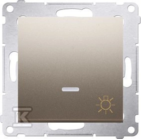 Przycisk "światło" z podświetleniem LED 10 AX, złoty mat Simon54 o numerze katalogowym DS1L.01/44 w kategorii Przyciski podtynkowe "światło", Przyciski "światło". Produkt wyprodukowany przez markę KONTAKT-SIMON, seria SIMON 54.