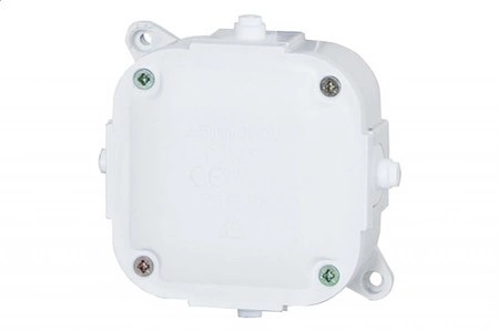 Puszka hermetyczna 85x85mm z zaciskiem, o numerze katalogowym F1.0078 w kategorii Puszki natynkowe, Puszki instalacyjne. Produkt wyprodukowany przez markę F-ELEKTRO.