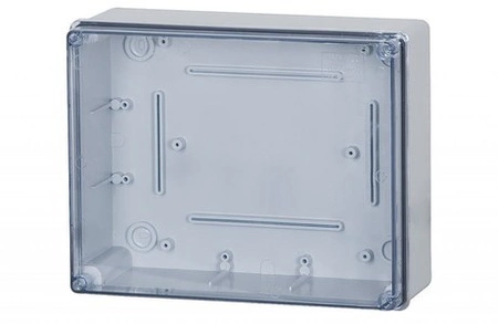 Puszka hermetyczna FG 190x140x70 pokrywa przeźroczysta o numerze katalogowym F1.0090 w kategorii Puszki natynkowe, Puszki instalacyjne. Produkt wyprodukowany przez markę F-ELEKTRO.