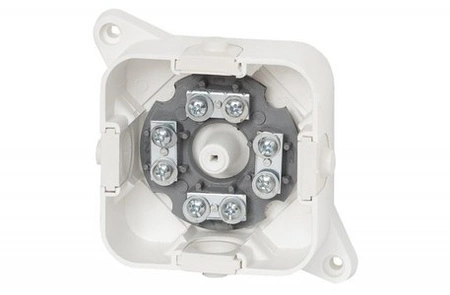 Puszka hermetyczna P2 z zaciskiem 4x2,5mm o numerze katalogowym F1.0032 w kategorii Puszki natynkowe, Puszki instalacyjne. Produkt wyprodukowany przez markę F-ELEKTRO.