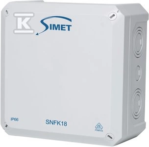 Puszka instalacyjna naścienna SNFK18, 180x180x93, IP66 szary o numerze katalogowym 83171002 w kategorii Puszki instalacyjne>Puszki natynkowe. Produkt wyprodukowany przez markę SIMET, seria SNFK.